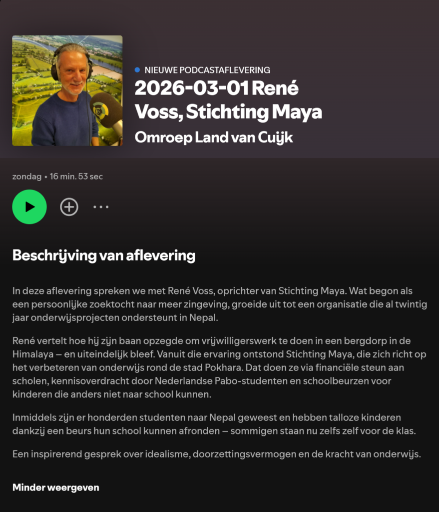 Media In de media Hieronder vind je enkele van de artikelen die over Maya zijn verschenen in de media. Wegwijs, 11 maart 2026 Omroep Land van Cuijk, 1 maart 2026 Wijkkrant Nijmegen Oost, januari 2025